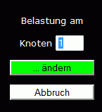 Im Bereich "Ändern und löschen" wird auf den Button "Kraft" geklickt. Es erscheint das Angebot, die Belastung am Knoten 1 zu ändern (linkes Bild):