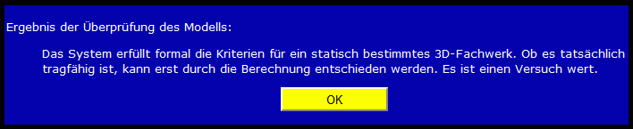 Bei etwas komplizierteren Aufgaben wird empfohlen, das Modell einem formalen Test zu unterziehen. Anklicken des Button "Modell testen" führt zu folgender Ausschrift: