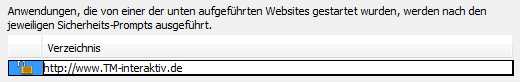 Die Standardeinstellung für die Sicherheitsebene "Hoch (Mindestempfehlung)" gestattet also nur die Ausführung von zertifizierten Programmen. Zwei Wege sind möglich, um trotzdem die Programme unter "TM-interaktiv" ausführen zu können: