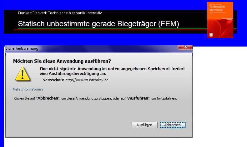Statement des Programmierers von TM-interaktiv Die unter "TM-interaktiv" angebotenen interaktiven Programme wurden mit erheblichem Aufwand hergestellt und werden nach wie vor frei angeboten. Gegenwärtig sind es 24 Programme, von denen 7 auf Java-Applets basieren. Java wird von der Firma Oracle kostenlos zur Verfügung gestellt, neuerdings allerdings nur noch für zertifizierte Programme. Natürlich könnte ich meine Programme zertifizieren lassen, was allerdings mit nicht unerheblichen Kosten verbunden ist. Ich bitte um Verständnis, dass ich nicht dafür bezahlen möchte, wenn man meine Programme nutzt. Hier wird beschrieben, wie es auch ohne Zertifizierung geht. Für mich hat es den Vorteil, dass man mir explizit das Vertrauen ausspricht, wenn man meine Programme nutzt. Vielen Dank dafür! |
