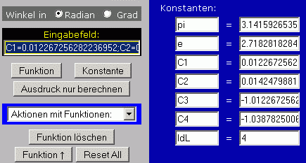auf "Konstante" oder durch Drücken der Enter-Taste werden alle übernommenen Werte