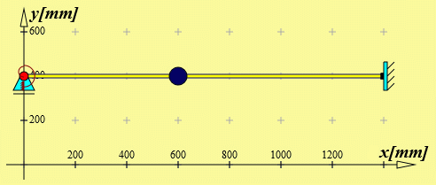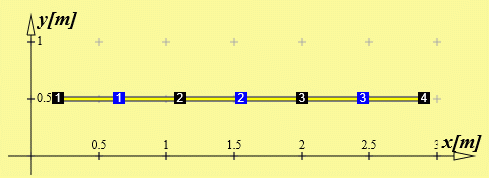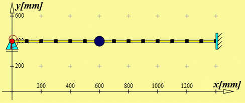 Nebenstehend sieht man das komplette Berechnungsmodell für die Einteilung in nur 2 Elemente. Die mit diesem Modell berechnet 1. Eigenfrequenz f1 = 34,478 s−1 weicht vom exakten Wert (siehe: Analytische Lösung) um weniger als 0,3% ab, die Näherung der 2. Eigenfrequenz durch dieses Modell ist allerdings schon unbrauchbar.