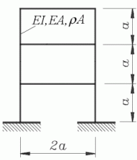 Beispiel 2: Für den skizzierten biege- und dehnsteifen Rahmen mit konstantem Querschnitt berechne man die kleinsten Eigenkreisfrequenzen und die zugehörigen Eigenschwingungsformen.