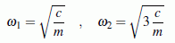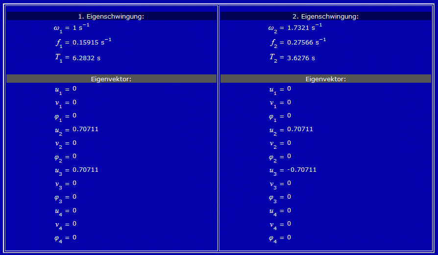 Mit den Zahlenwerten m = 1 kg für die beiden Massen und c = 1 N/m erhält man die folgenden (exakten) Ergebnisse: